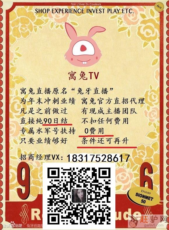 寓兔直播招商充值模式结算的直播平台,只要充值就结算,免费水库扶持号,主播共享,90日结,目前政策优惠包含税!无任何加盟费...